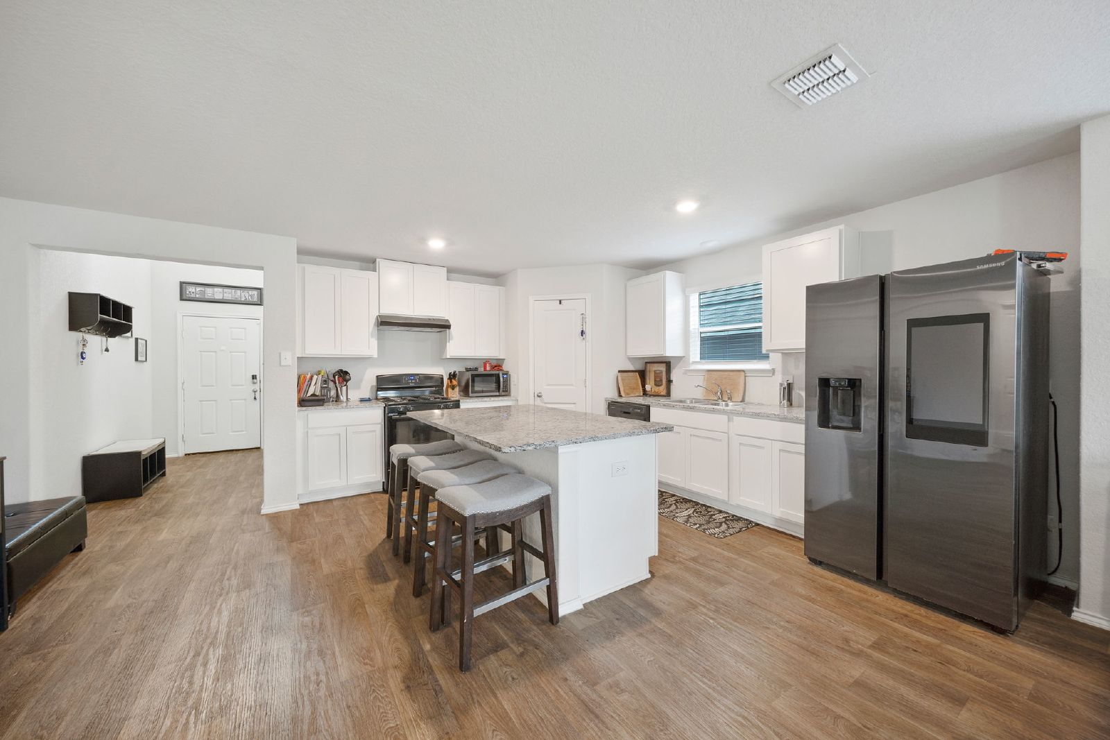 This stunning two-story residence features four spacious bedrooms, 2.5 bathrooms, and a versatile loft space, perfect for a home office or play area. The home features wood-look vinyl flooring throughout, adding a touch of elegance and easy maintenance. An abundance of windows creates a bright and inviting atmosphere. The Kitchen is equipped with an island for extra prep space and gas cooking. Located in a vibrant neighborhood brimming with amenities, you'll enjoy access to multiple pools, a splash pad, sports courts, tennis facilities, and a welcoming clubhouse. Whether you're looking to relax or stay active, this community has something for everyone.